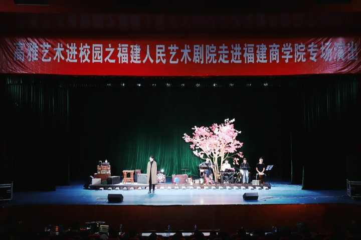 当天,来自福建人民艺术剧院的艺术工作者们通过精心设计的场景、配乐,深情的歌唱、诵读,以舞台剧的形式,按照剧情和主题,演绎和展示了《牧羊女》《匆匆》《镜中》《花瓶》《墓床》《九月》等诗歌,让师生在全新的视听体验下融入到诗人的灵魂之中,领悟诗歌特殊的意象美,感受诗歌独特的艺术魅力。精彩的演出让师生自然陶醉其中,现场不时响起热烈的掌声。