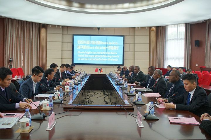为响应国家“一带一路”倡议,推进新商科国际化人才培养与教育合作,10月22日,巴布亚新几内亚渔业部长Basa Patrick 与东新不列颠省省长Nakikus Konga一行7人,在海外校友企业福建中鸿渔业有限公司代表及相关人员的陪同下来到永利官网进行教育考察与交流。学院党委刘剑津书记、黄斌校长会见了客人并参加签约仪式,省教育厅对外合作处林海峰处长到会参加。签约仪式由康文杰副校长主持。