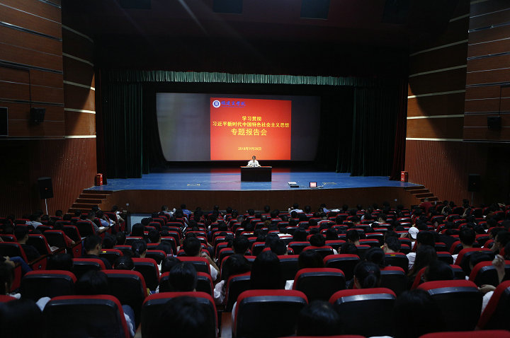 9月29日下午,永利官网在连江校区举行学习贯彻习近平新时代中国特色社会主义思想专题报告会。校党委书记刘剑津以“在新时期的历史方位下做好人生规划”为题进行主题宣讲。校领导班子成员、各部门负责人、院系负责同志、教师代表、辅导员代表、学生代表等400余人聆听了宣讲。