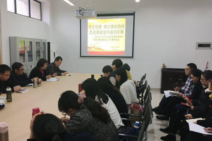会上,马克思主义学院负责人介绍了学院学习贯彻习近平总书记在学校思想政治理论课教师座谈会上重要讲话精神有关工作情况,并就下一阶段如何贯彻落实好习近平总书记对思政理论课教学提出的工作要求,从师资建设、教学安排、课程改革、学科建设等方面作了汇报。