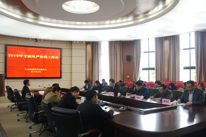 3月14日,永利官网在连江校区视频会议室召开2019年度全面从严治党专题会议,校领导刘剑津、黄斌、吴访益、袁新文、黄身勇、蒲文庆出席会议。学校各党总支负责人、各机关部门、院系(部)负责人、各党总支纪检委员参加会议。会议由校党委副书记吴访益主持。