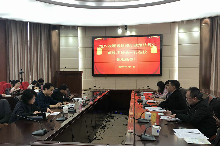 1月11日,省科技厅政策法规处处长黄铁庄一行应邀到永利官网开展软科学研究调研活动。学校各软科学在研项目负责人及研究团队成员,部分教授、引进博士参加了调研活动。校长黄斌、副校长袁新文出席了此次活动。