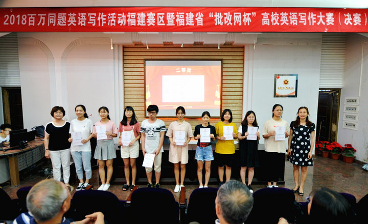本次写作大赛由全国高等学校大学外语教学研究会、中国高校英语写作教学联盟、福建省大学外语教学研究会、北京语言智能协同研究院联合举办,是全省规模最大的大学生英语写作比赛,来自厦门大学、福州大学、华侨大学、福建师范大学等45所全省高校的3万多名学生参加角逐,比赛分为初赛、复赛和决赛三个环节。