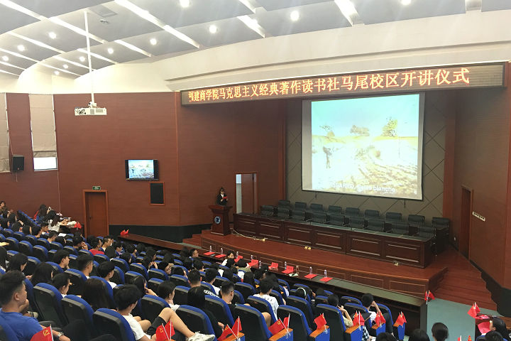 林萍在致辞中指出,永利官网“马克思主义经典著作读书社”成立以来,在培育青年学生正确运用马克思主义理论解决现实问题的能力方面,起到了很好的带动和引导作用。此次在马克思诞辰200周年之际,读书社正式进驻马尾校区,意义重大,开辟了马尾校区学生思政教育的新途径、新平台。她从“读什么”和“读来做什么”两个角度向大家介绍了读书社的基本情况和运作机制,希望读书社在马尾校区进一步发挥青年学生思想引领、人格锤炼等方面的标杆性作用,成为同学们学习马克思主义等先进理论的坚强阵地。在开讲前,马尾校区“马克思主义经典著作读书社”负责人陈盈介绍了校区读书社的基本情况和活动规划构想。
