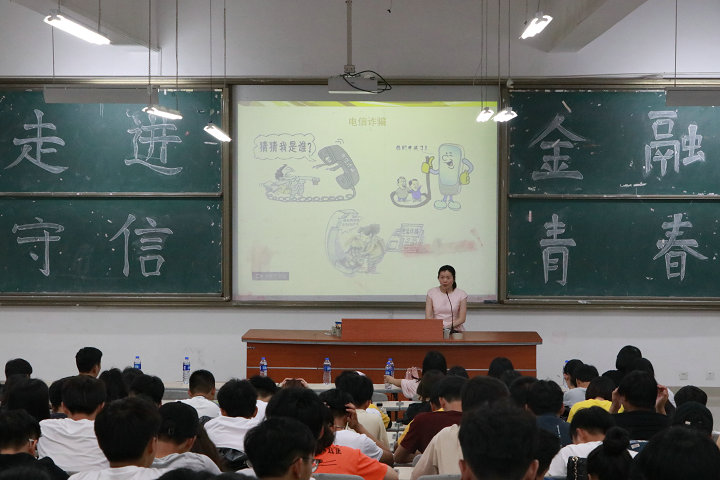 此次“金融知识校园行”主题宣传活动包括金融知识讲座和现场咨询活动。讲座主要就电信诈骗、线上线下产品闭环、冒充政府部门等知识与诈骗案例,分析了日常生活中常见的因非法买卖银行卡可能涉及洗钱、诈骗转账和外汇拆分等金融违法行为存在的安全隐患。还讲解了校园网贷及抵制不良校园贷方法。