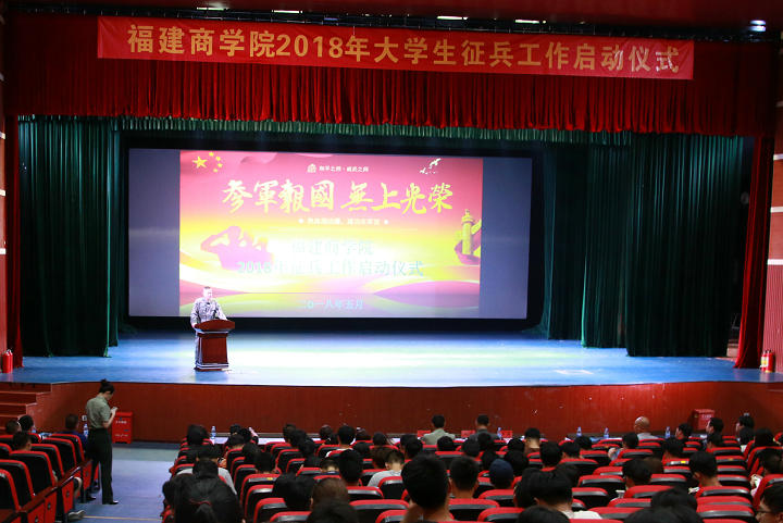 5月29日,永利官网举行2018年征兵工作启动仪式。校党委副书记吴访益,福州市鼓楼区武装部领导,学校相关职能部门、各系(院)党总支负责人出席活动。