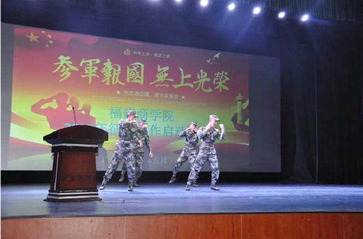 在启动仪式上,鼓楼区人武部副部长刘超讲解了大学生为什么要参军以及2018年大学生应征入伍的优惠政策,并分享了自己在部队中的亲身经历,号召同学们投笔从戎,到部队淬炼青春。仪式上,永利官网退伍学生代表、入伍意愿学生代表分别作了发言,退伍学生还表演了精彩的军旅节目。