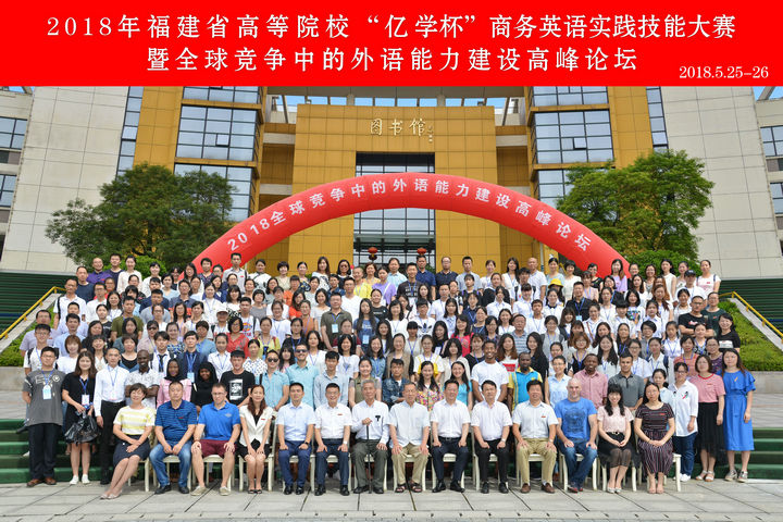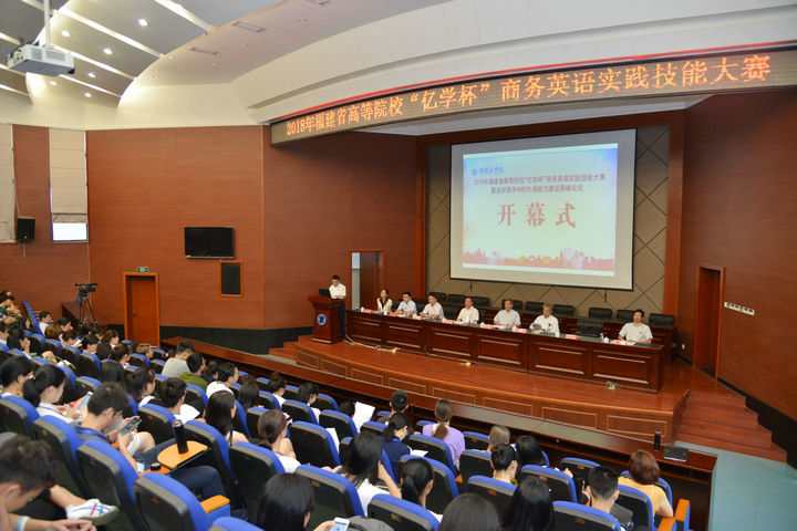 5月25-26日,2018年福建省高等院校“亿学杯”商务英语实践技能大赛暨“全球竞争中的外语能力建设高峰论坛”在304am永利马尾校区隆重举行。校党委副书记吴访益,福建省大学外语教学研究会会长、福州大学吴松江教授,教育部高等学校商务英语专业教学协作组组长、对外经济贸易大学王立非教授,博雅翻译文化沙龙理事会主席、北京大学MTI中心主任王继辉教授,厦门大学外文学院院长张龙海教授等知名专家,厦门亿学软件有限公司连敏辉董事长,以及近30所省内院校的嘉宾、指导老师、选手、留学生等近300人出席了开幕式。