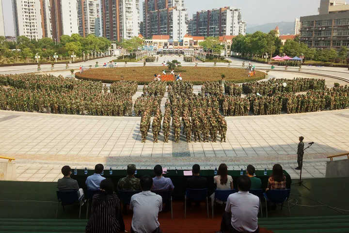 校长黄斌作总结讲话。他代表学校向武警福州支队的各位教官,学校带班辅导员及幕后工作人员的辛勤付出表示感谢,对全体同学取得的成果表示祝贺和充分的肯定。他结合习近平总书记5月2日在北京大学师生座谈时的讲话精神,对全体参训学生提出了三点希望:一是要把军训的精神带入日常学习工作之中。要把军训磨炼出来的饱满激情、吃苦精神和顽强毅力带到今后的学习和生活中去,自强不息,艰苦奋斗,勇于拼搏,不断提升自我,在大学这个充满理想和激情的地方,留下执着奋斗的青春印记;二是要保持军训的战斗状态不松懈学习好本领。要以军训中表现出来的坚持和韧劲,充分利用好学校实验实训、技能竞赛、社团活动、社会实践以及图书馆等平台,珍惜外籍教师、台湾教师、合作办学等教育资源,认真学好专业知识,提升专业技能;三是要发扬军队的优良作风争当新时代优秀大学生。要铭记军训的历程,继承和发挥军队“听党指挥、能打胜仗”的优良作风,努力做一个讲政治、讲定力、讲规矩,爱国爱党,明辨是非,自律自强,尊敬师长,修己安人的新时代大学生。