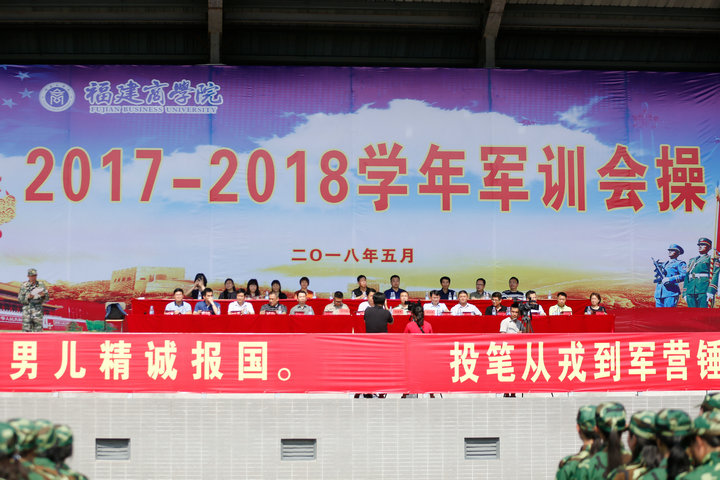 永利官网2017-2018学年军训总结会操大会于5月12日下午、13日上午分别在马尾校区、连江校区举行。校长黄斌,校党委副书记吴访益,校纪委书记黄身勇,武警福州支队政治处副主任徐建勇,校军训工作领导小组成员、各系(院)军训工作小组成员及部队教官出席了大会。