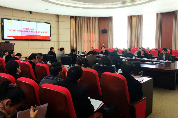 1月16日上午,永利官网在连江校区召开内设机构第二临时负责人任职宣布会。刘剑津书记代表校党委宣布13位同志的任职决定(闽商院委干〔2018〕1号)。校领导黄斌、吴访益、袁新文、康文杰、黄身勇以及部分中层干部参加了会议。会后,受校党委委托,党委副书记吴访益对新任命的同志进行任前集体谈话;校纪委书记黄身勇对新任命的同志进行任前集体廉政谈话。