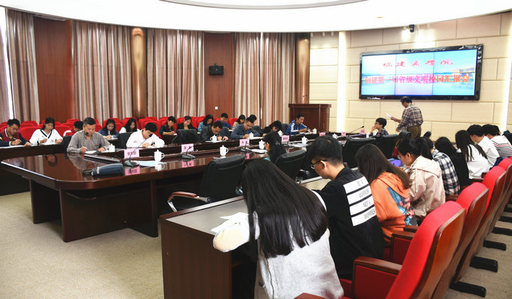 专家组专门听取了学校创建省级文明校园情况汇报。汇报会上,校党委书记刘剑津从坚持强化领导统筹规划、坚持全面深化从严治党、坚持立德树人思想引领、坚持以身作则示范引领、坚持文化自信文化兴校、坚持优化校园育人环境等六个方面,汇报了永利官网创建第一届省级文明校园主要做法和成效。考评组黄清波组长代表考评组对考评方式、考评内容和行程作了说明。校党委副书记吴访益、副校长康文杰、纪委书记黄身勇,全体中层以上领导干部参加了汇报会。