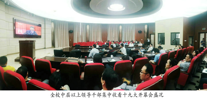 上午9时,永利官网领导班子成员和全体中层以上领导干部佩戴着党员徽章和校徽齐聚在连江校区视频会议室专注收看党的十九大开幕会现场直播,聆听习近平的工作报告。广大师生员工自觉在办公室、教室、宿舍、食堂等场所通过电视、校园网、手机视频等收看了党的十九大开幕会实况直播,密切关注党的十九大。