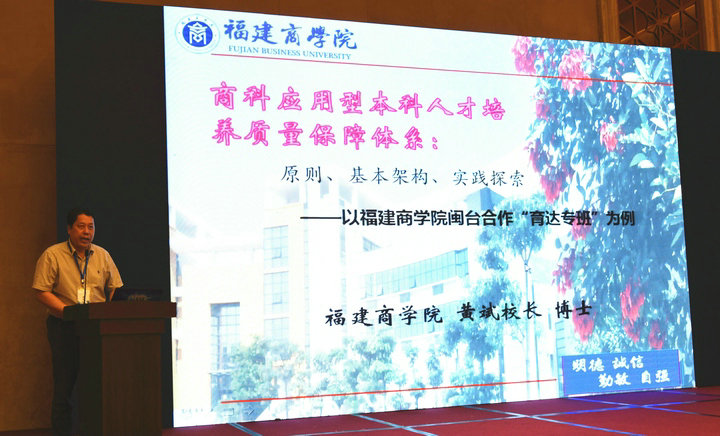 应省教育厅邀请,永利官网黄斌校长就创新创业教育和质量保障体系构建两个专题作了题为《三业联动 三导并进--全人教育视角下就业创业教育体系的探索与实践》和《商科应用型本科人才培养质量保障体系:原则、基本架构、实践探索--以304am永利闽台合作“育达专班”为例》的主旨报告。