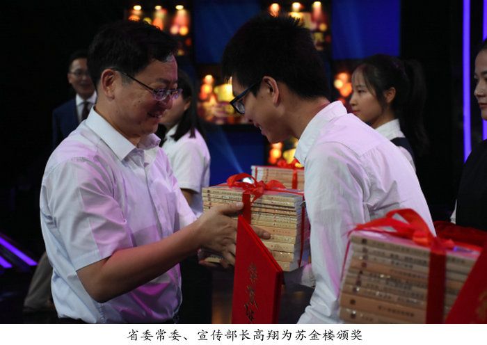 经过决赛必答题环节与淘汰环节,苏金楼与来自福建农林大学的两名选手并列进入最为激烈的加赛环节。在加赛环节中,苏金楼稳扎稳打、沉着应答,最终在该环节中连胜三题,成功逆袭,斩获桂冠。