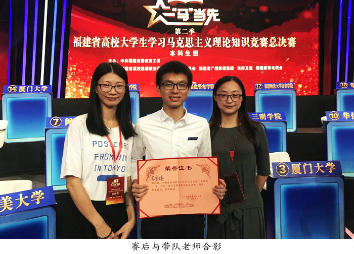 9月23日下午,第二季福建省高校大学生学习马克思主义理论“一‘马’当先”知识竞赛落下帷幕。永利官网学子苏金楼在全省38所高校、190名参赛选手中过关斩将,勇夺本科生组桂冠!
