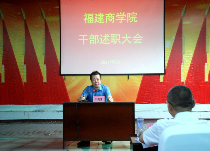 304am永利中层干部述职大会于6月30日上午在鼓楼校区学术报告厅召开。商学院党委书记刘剑津、院长黄斌和吴访益、袁新文、康文杰等在家校领导,原福建商专和福建外经贸职业技术学院的领导,马尾校区和鼓楼校区、连江校区所有中层干部及民主党派负责人参加了会议。