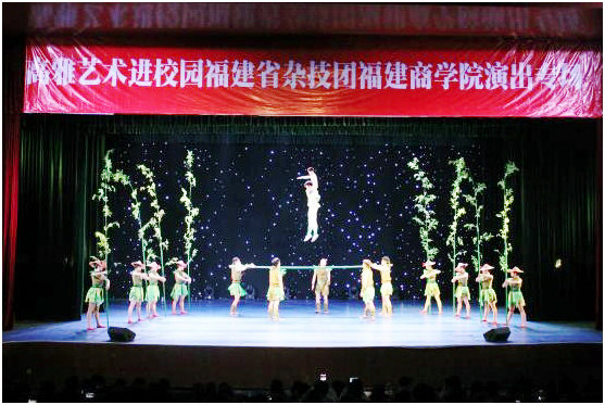 为丰富校园文化生活,提高校园艺术修养,进一步推动高雅文化进校园活动。3月28日,福建省杂技团在永利官网学生活动中心举行两场专场演出,将精心打造的杂技节目送进校园。