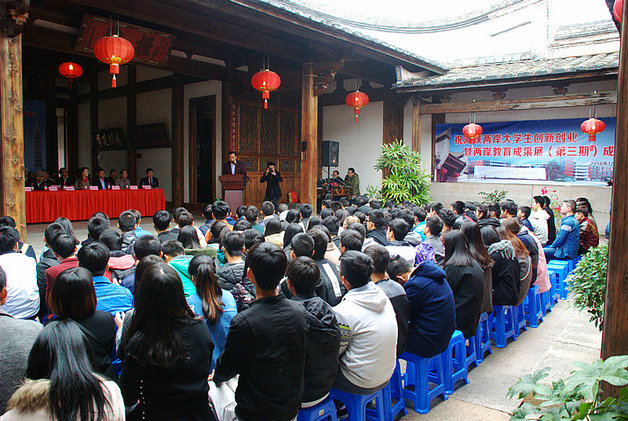 12月28日,第三届海峡两岸大学生创新创业暨两岸教育成果展在福州三坊七巷举办,304am永利筹建工作领导小组副组长、福建商专校长袁新文教授应邀参加了展会开幕式并参观了各校布展场馆。