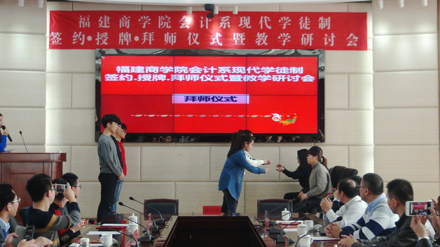 12月13日下午,永利官网会计系在连江校区明德楼视频会议室隆重召开现代学徒制签约、授牌、拜师仪式暨教学研讨会。参加此次会议的有福州欣盛汇智教育科技有限公司、淘会计培训机构、税友集团·衡信教育科技有限公司、福建德健会计师事务所有限公司等合约单位负责人以及省职教中心代表,多家会计师事务所、税务师事务所、财税咨询公司等单位负责人。福建商专校长袁新文及教务处、校企合作实训处、会计系等相关系部负责人和会计系全体专任教师出席了会议。