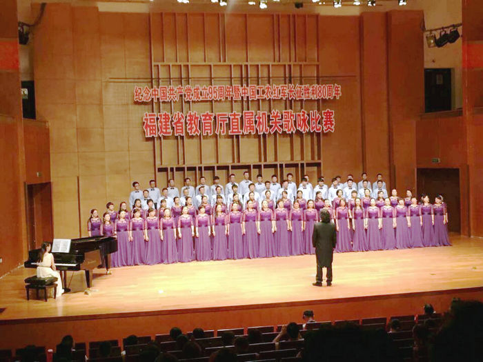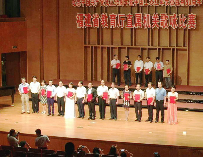 为隆重纪念中国共产党成立95周年暨红军长征胜利80周年,在歌声中回顾党的光辉历程,讴歌党的丰功伟绩,大力弘扬爱国主义精神,培育和践行社会主义核心价值观,抒发永利官网教职工爱党爱国情怀,激发工作热情,进一步推进和谐校园建设,永利官网组建了由领导干部和一线教职员工组成的80人合唱团,并于6月26日参加了福建省教育厅机关直属单位(学校)纪念建党95周年暨红军长征胜利80周年歌咏比赛。