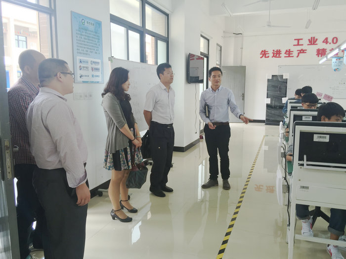 陈金建主任一行参观工业工程技术专业的先进生产实训室与云计算实训室