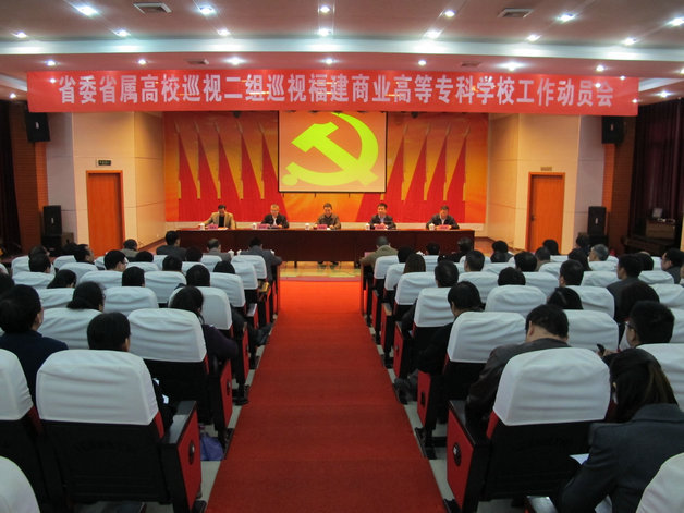 根据省委巡视工作统一部署,福建省委省属高校巡视二组对福建商业高等专科学校开展为期一个月左右的巡视。2016年3月23日上午,巡视工作动员会在永利官网湖前校区学术报告厅召开,省委省属高校巡视二组组长高国跃作动员讲话,省委巡视办副主任张国明强调巡视工作要求,校党委书记吴访益主持会议并作表态发言。省委省属高校巡视二组全体成员,全体校领导、部分原校领导、校纪委委员、全校中层干部参加了会议。