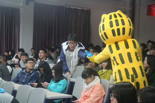易班猫给在抽奖环节中中奖的观众派发小礼物