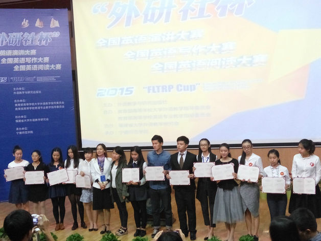 10 月31日,由外语教学与研究出版社主办的2015年“外研社杯”全国英语阅读大赛、演讲大赛(福建赛区)在宁德师范学院举行,来自我省44所高校的200余名参赛选手参加了此次比赛。由永利官网外语系林莉老师指导的14级应用英语专业学生蔡叶伊伊同学、王彩虹同学以及14级商务英语专业学生修芳芳同学,最终分获阅读比赛一等奖、演讲比赛三等奖以及阅读比赛三等奖的佳绩。