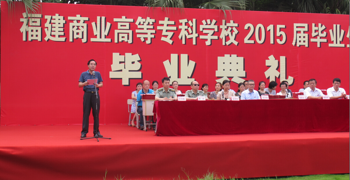 典礼上,袁校长发表了精彩的毕业致辞。他代表学校向2015届毕业生表示衷心的祝贺,向为之付出辛勤劳动的教职工表示了诚挚的敬意。随后,袁校长以四句赠言,寄语即将踏上人生新旅途的同学们,表达了对同学们的殷殷期望:一是德才兼备、学会做人。希望同学们学会做事先做人,在社会的大课堂里能够继续秉承商专精神,不断提升自己的人格境界,成为德才兼备、全面发展的人才;二是自强不息、努力奋斗。勉励同学们时刻牢记艰苦奋斗,在面临严苛生活考验的时候要学会迎难而上,通过努力奋斗实现自己的人生梦想;三是热爱生活、珍惜亲友。嘱咐同学们用宽容豁达的态度对待生活中的艰难坎坷、风风雨雨,珍惜时间和工作、珍爱亲人和朋友、珍视生命和生活;四是铭记母校、薪火相传。希望同学们将商专的优良传统发扬光大,不辜负母校对同学们的厚望,在日后的工作岗位上做出突出贡献。母校也将一如既往地关注同学们的成长,同时也期望同学们始终心怀母校,常回家看看。最后,袁校长再次祝福所有同学们都能够拥有多彩的人生和远大的前程!