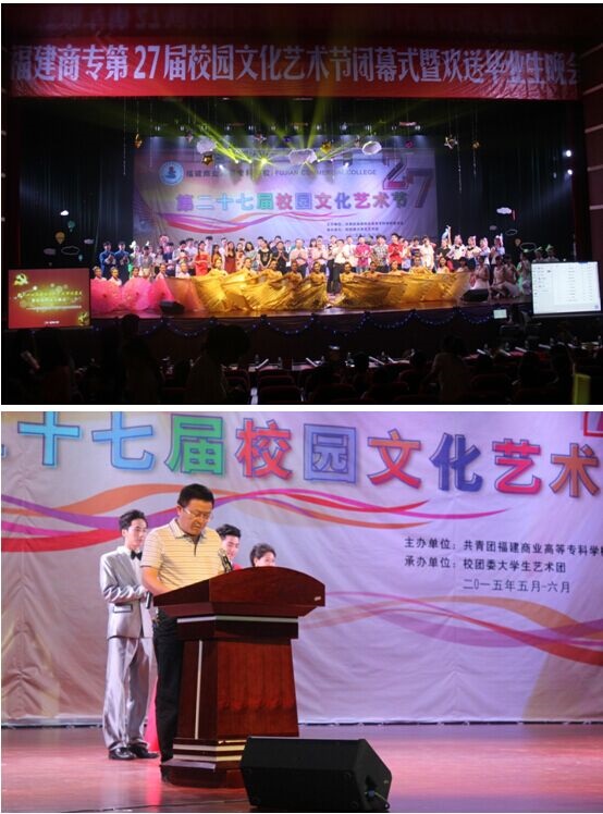 晚会在明媚清婉的钢琴独奏中拉开序幕,时而含蓄时而奔放的音乐点燃了在场观众的热情。随后,黄跃舟副书记上台致辞,他充分肯定了本届校园文化艺术节所取得的成果并预祝闭幕式暨毕业生欢送晚会圆满成功。在本场晚会中,校十佳歌手、校舞蹈队及各系都有精彩的演出。气势澎湃的舞蹈《舞动金鹰》、青春活力的歌舞《找自己》、细腻圆润的古典舞《美人吟》、余音绕梁的京剧《贵妃醉酒》,精彩的表演将晚会一步步推向高潮。本次晚会还对2014年度及第27届文化艺术节期间涌现出的先进组织及先进个人进行了颁奖。整场晚会进行了两个多小时,优美的舞姿、动听的旋律和幽默风趣的表演让在场的每一位观众陶醉其中。