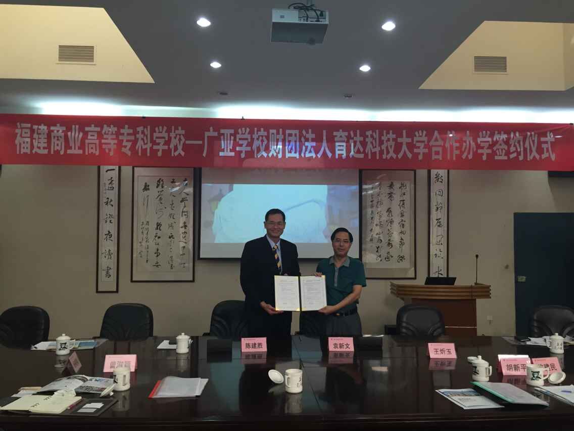 座谈会上,袁校长对陈建胜校长一行的到来表示了热烈的欢迎。袁校长表示,吸引台湾优质的教育资源来提升永利官网的整体办学水平及帮助学生成长成才是闽台合作办学的根本目的,育达科技大学与福建对外经济贸易职业技术学院合作开办的“育达专班”是闽台合作办学的一大亮点,值得我们学习和借鉴。双方广泛交流了各自学校的发展历程、办学特色、专业建设、师资水平及与对外合作办学等情况,并就两校合作的模式、专业、学费等细节问题进行了深入地交流。座谈会后,永利官网与育达科技大学当场签订了《校际合作协议书》,初步约定在条件成熟的情况下与永利官网相关专业进行深入合作。