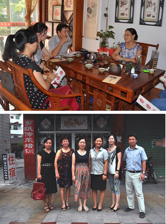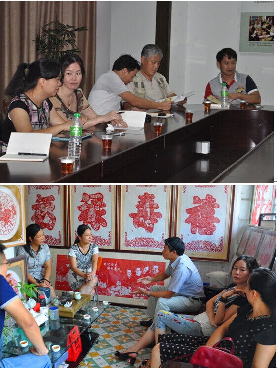 同时,为了寻求与福建省非物质文化遗产剪纸项目合作空间以及校剪纸馆的建设,我系教师拜访了漳浦县剪纸协会的陈宝梅、陈燕榕、游金美、欧阳艳君和李小燕等几位老师,双方就福建剪纸的现状和今后关于就民间剪纸的前景、与校企合作模式进行了深入探讨。