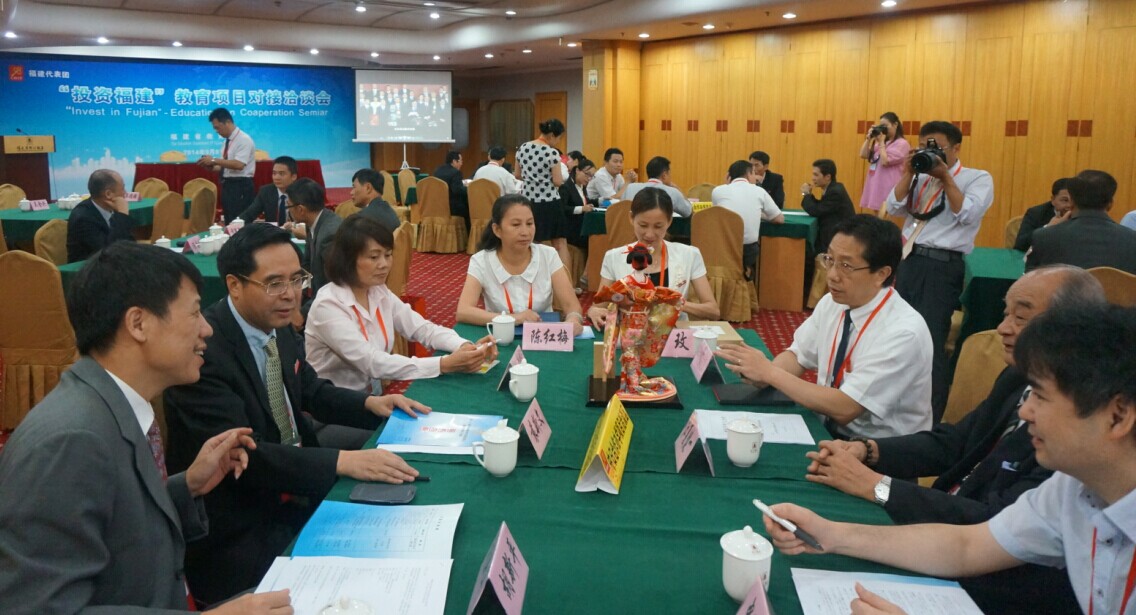9月8日上午,袁新文校长率永利官网代表团参加了福建省教育厅组织的第十八届中国国际投资贸易 “投资福建”教育项目对接洽谈会。福建省委教育工委副书记刘剑津、福建省教育厅对外合作处处长吴金兴、海峡两岸职业教育交流合作中心主任陈金建等出席了会议,永利官网及福建信息职业技术学校、福建对外经济贸易职业技术学院等省内三所高等学校代表团,日本好莱坞大学院大学、日本大原学园、台湾建国科技大学、台湾东南科技大学等国(境)外代表团等进行了对接洽谈。