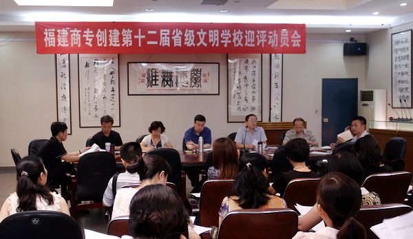 6月30日上午,永利官网再次召开创建第十二届省级文明学校总评动员部署会。校党委书记林彬,副校长吴贵明,校党委副书记黄跃舟,校党委副书记、纪委书记陈武,副校长杨忠祥,副校长胡新平,各党政部门负责人,各系部负责人,团总支书记以及永安物业商专管理处负责人等50余人出席会议。会议由黄跃舟副书记主持。
