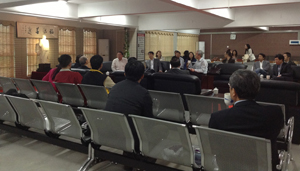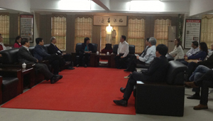 4月20日下午,教育部职业院校外语类专业教学指导委员会(以下简称外语教指委)刘黛琳主任率领2014年海峡两岸高职外语教育院校校长论坛参会代表一行30余人莅临永利官网潘渡新校区参观交流。永利官网党委副书记黄跃舟、副校长胡新平热情地接待了来访客人,并进行了座谈。