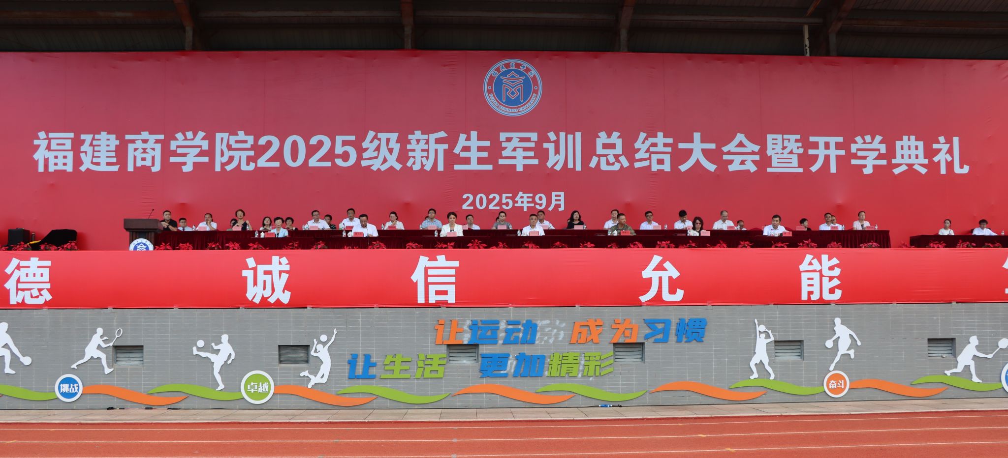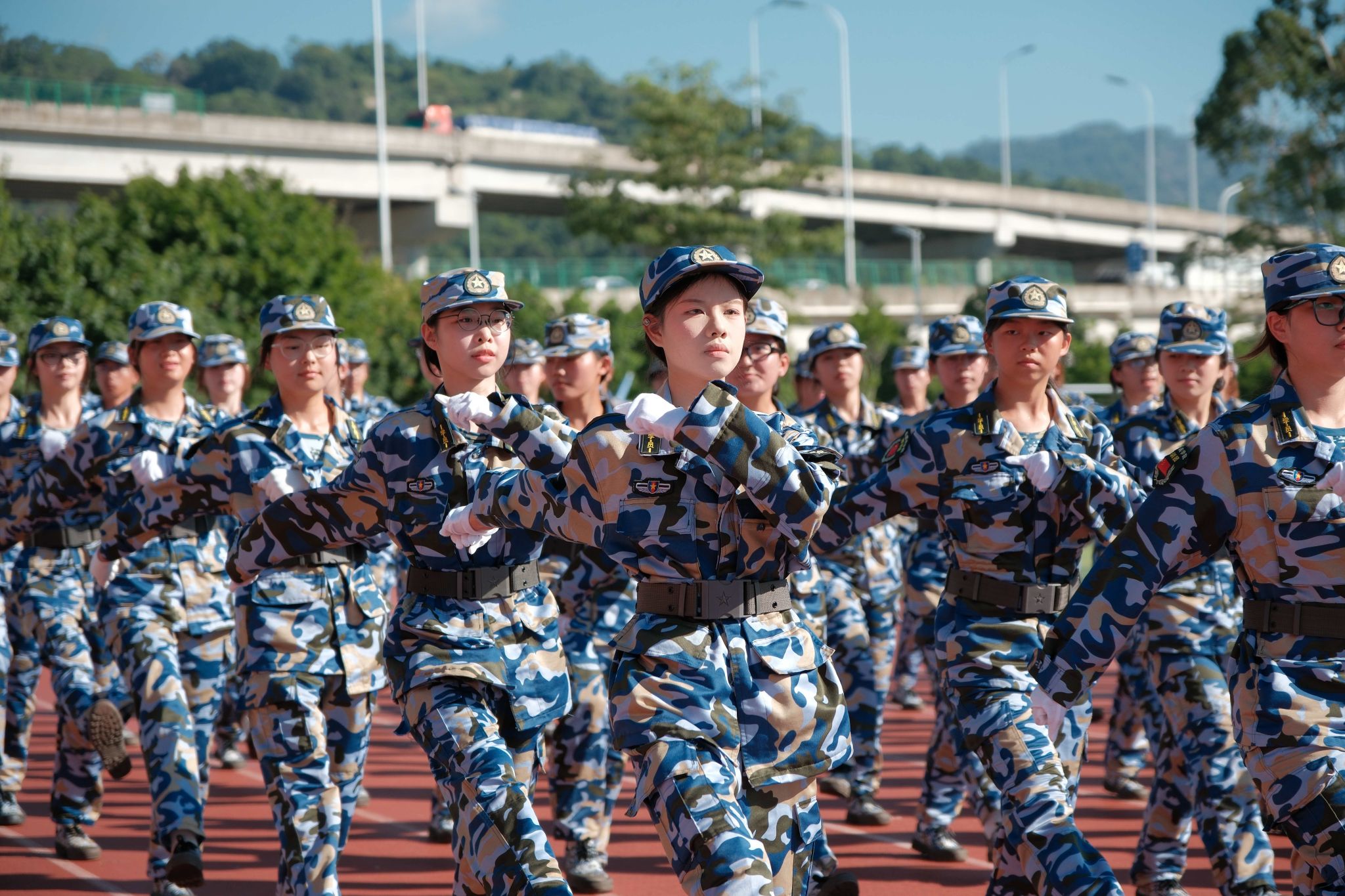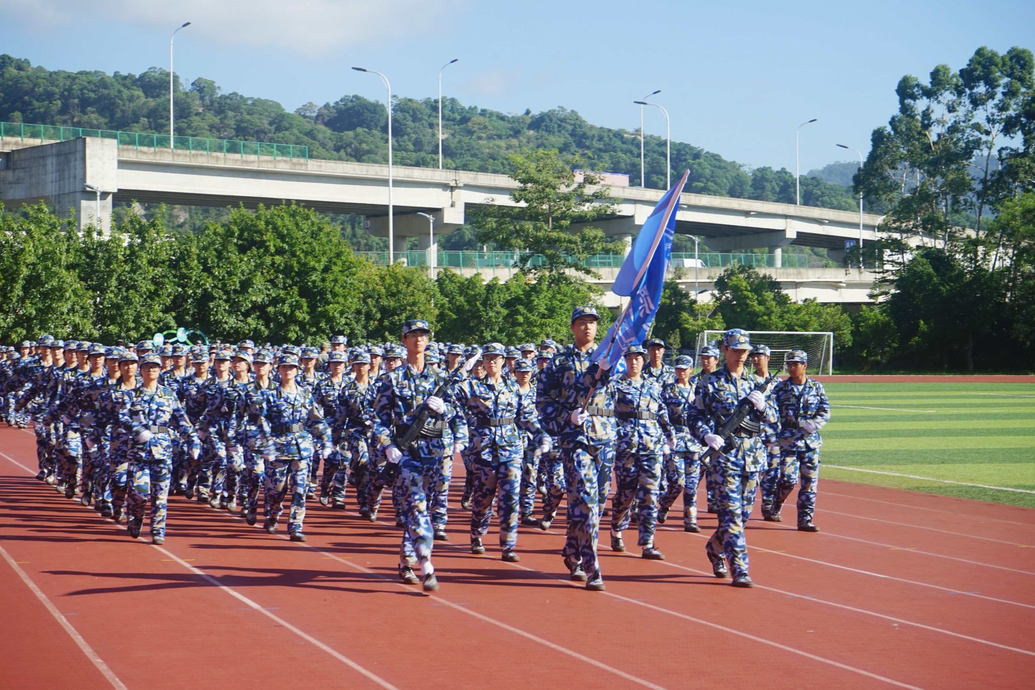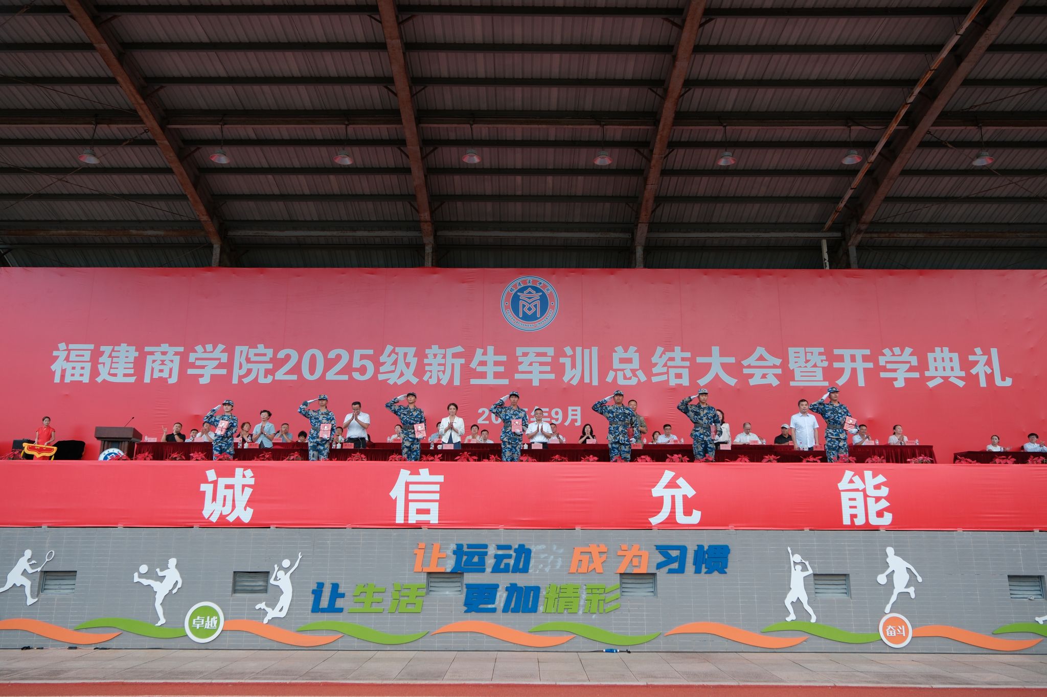 全校10个二级学院的新生步伐整齐、精神抖擞地走过主席台接受检阅。分列式、军体拳、刺杀操方阵表演、战术方阵表演、军歌大合唱等精彩纷呈,充分展现了福商学子的军训成果和昂扬风貌。
