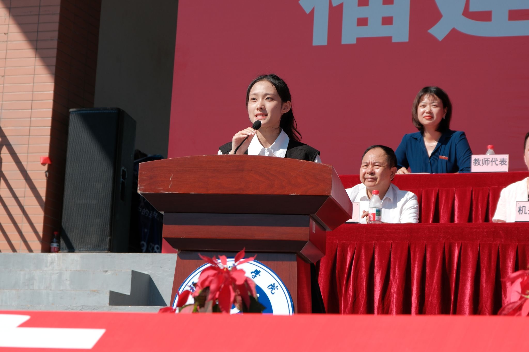 新生代表外国语学院黄雅艺表示要谨记“明德、诚信、允能、笃行”的校训,不负韶华,不负时代,用努力与拼搏,为未来的自己交上一份满意的答卷。信息工程学院张惠娥表示要用汗水浇灌梦想,用奋斗致敬青春—,努力成为一个有志、有为、有才、有德的新时代青年。