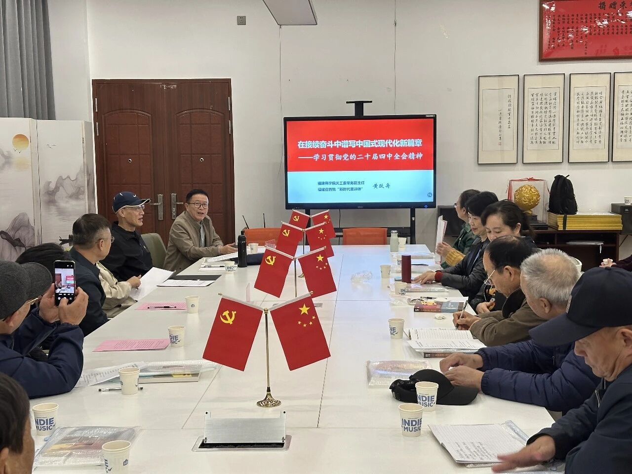 培训班邀请专家作《接续奋斗谱写中国式现代化新篇章——学习贯彻党的二十届四中全会精神》专题报告。引导离退休干部从“怎么看、怎么学、怎么干”三个层面深化对全会精神的理解,组织离退休干部到永泰县葛岭镇数字产业园参观学习,深入了解产业园党支部在党建引领事业新发展方向发挥的积极作用。通过观摩古籍文献修复技艺,体验雕版印刷、碑刻传拓、手工造纸等非遗项目,老同志深切感受到科技创新发展带来的新变化,并为科技快速发展感到自豪。