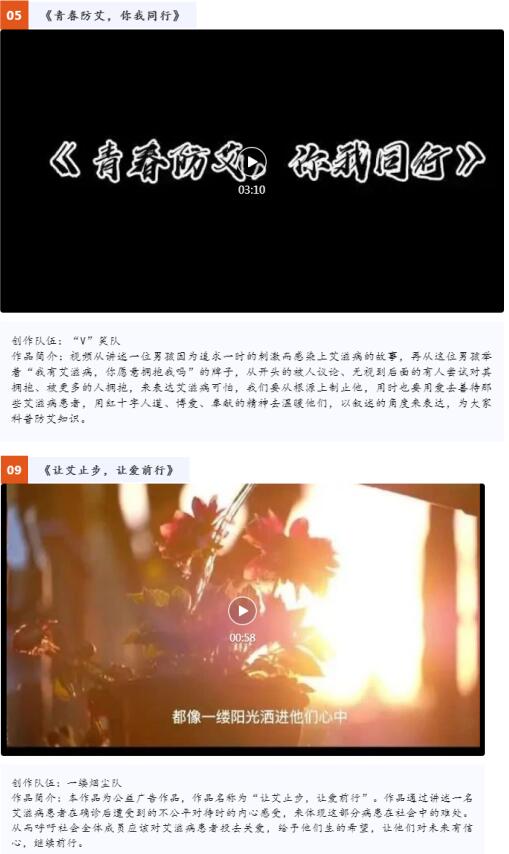 在防艾视频征集活动中,同学们踊跃参加,充分发挥创新意识,通过视频积极宣传普及艾滋病防治知识,引导树立文明健康的生活理念和方式。