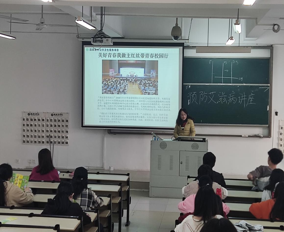 学校邀请福州市马尾区疾病预防控制中心主治医师陈珍从艾滋病危害性的认识、预防知识、检测与治疗、法律法规、健康心理等方面向同学介绍了最新的有关信息,指出了面临的风险挑战和大学生群体存在的突出问题,并就如何提高防艾意识、有效预防艾滋病等作了专业讲解。