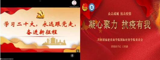 校团委通过挖掘疫情防控中涌现出的先进事迹和青年典型,利用“团员干部上讲台”等形式讲授抗疫思政课,让全体团员深刻认识所肩负的使命和担当。海外教育学院团委通过腾讯会议平台开展主题思政课,引导学生干部在特殊时期做好本职工作,维护安定稳定。国际经贸学院团委召开“凝心聚力,抗疫有我”专题线上思政课,分享疫情防控中的先进事迹,号召全体团学干部率先垂范,推动各项疫情防控工作落细落实。