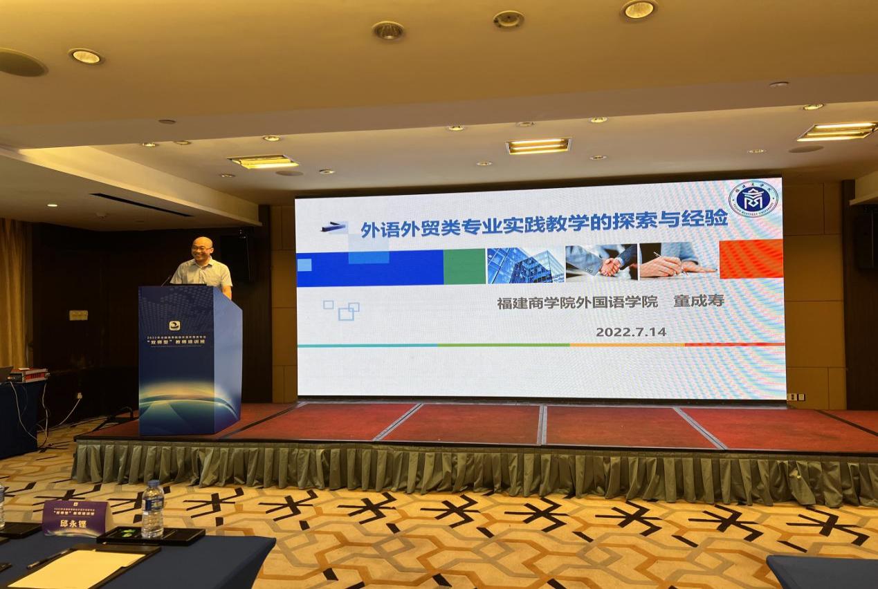 7月12日至16日,2022年全国高校外语外贸类专业“双师型”教师培训班在厦门举行,永利官网外国语学院童成寿老师受中语智汇科技(厦门)有限公司的邀请,在培训班上作题为“外语外贸类专业实践教学的探索与经验”的主旨发言。