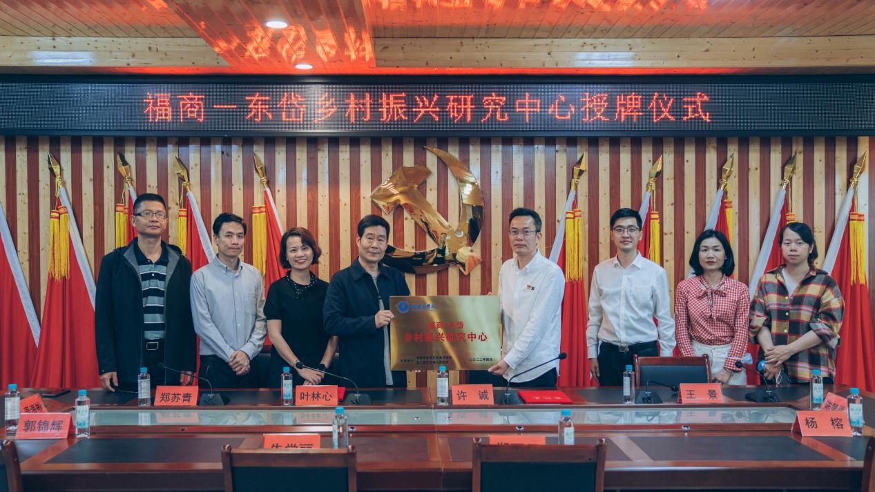 会上,东岱镇党委书记许诚介绍了东岱镇经济结构、发展特点、生态治理等相关情况;艺术设计学院院长叶林心从学院简况、师资队伍、校企合作等方面对学院作了详细介绍。双方就文化旅游、教育发展、科技创新、生态环境、党建共建等方面进行深入交流,达成了资源共享、优势互补、互利共赢的合作共识。会后举行了校地合作签约仪式以及“福商-东岱乡村振兴研究中心”授牌仪式。