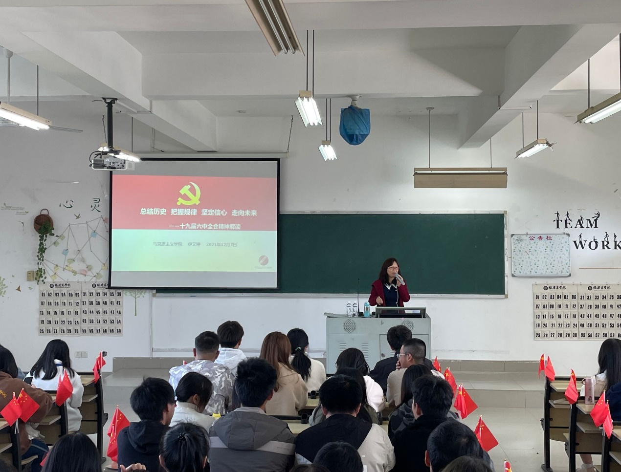 12月7日下午,福建幼儿师范高等专科学校马克思主义学院院长伊文婷教授应邀到永利官网马尾校区开展题为“总结历史,把握规律,坚定信心,走向未来——党的十九届六中全会精神解读”的讲座,马尾校区校马列经典著作读书社指导老师和全体社员参加了此次讲座。
