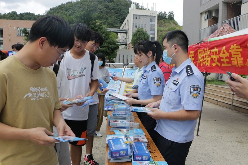 信息技术中心、安全保卫处和信息工程学院学生第一党支部师生,联合连江县委宣传部、连江县公安局网安大队工作人员,在青春广场开展了以“网络安全为人民,网络安全靠人民”为主题的2021年网络安全宣传周宣传活动。活动现场通过悬挂横幅、摆放案例展板、发放网络安全宣传折页、LED播放网络安全宣传视频等形式,吸引师生前来观看,志愿者们对在场师生进行了网络安全知识宣传,并结合身边典型案例,对电信诈骗等师生关注的热点问题进行解答,帮助师生提高个人信息安全风险意识和防范意识。