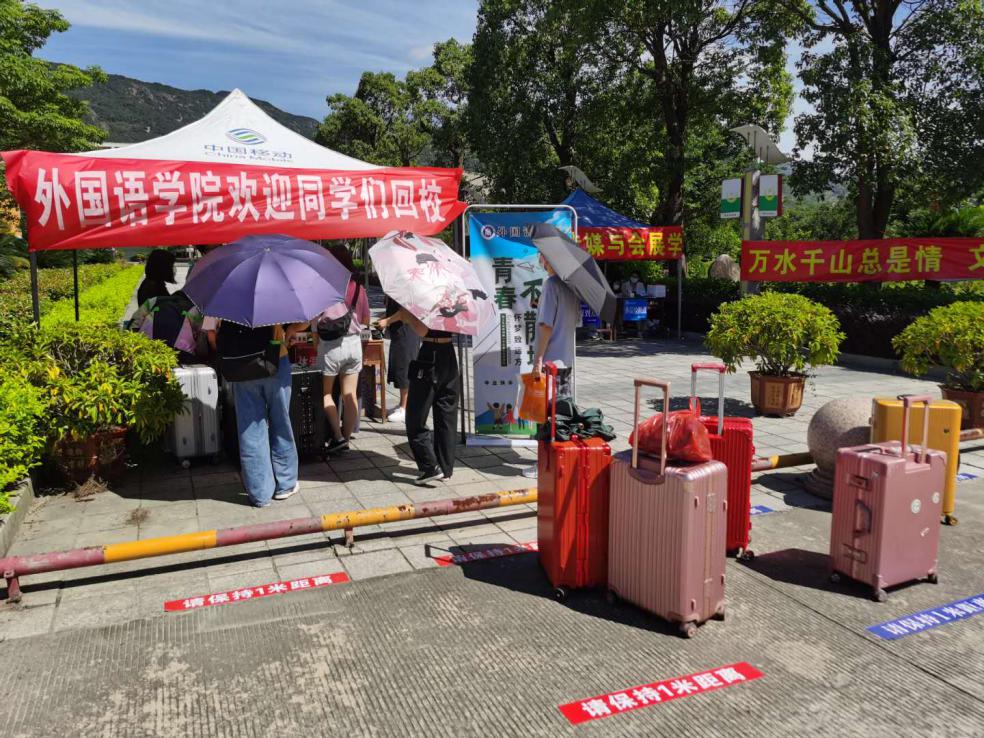 6月15日,外国语学院顺利完成2020届专科毕业生返校工作。返校当天,学院设置一米警戒线,测温点,教师志愿者服务岗以及党员服务岗,分散有序接待返校学生,同时为返校毕业生分装包括口罩、饮用水在内的防疫礼包。学院以学生卫生健康为中心,对每位学生严格执行健康管理,将每位学生的活动轨迹都记录在案,全力保障返校学生的安全。