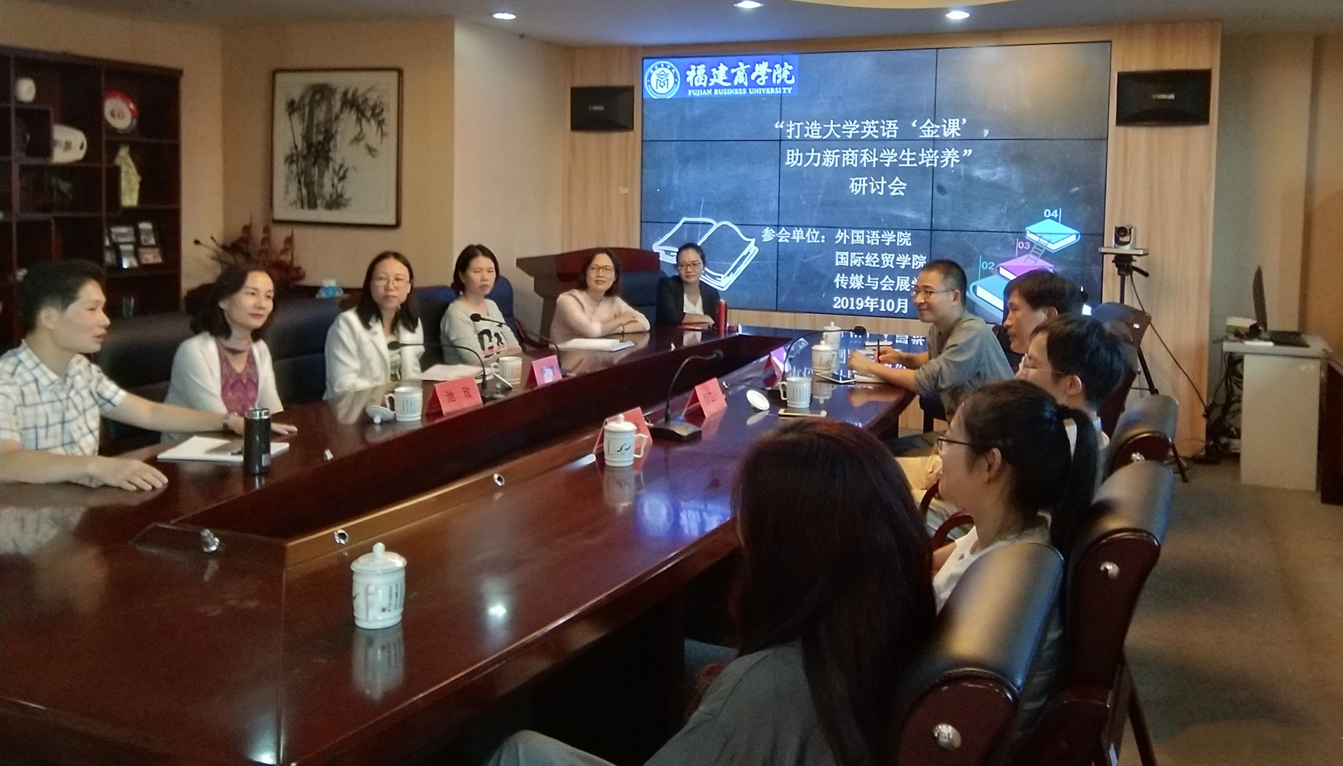 10月22日,外国语学院在马尾校区第二会议室召开“打造大学英语‘金课’,助力新商科人才培养”研讨会。传媒与会展学院、国际经贸学院负责人和有关老师参加研讨会。