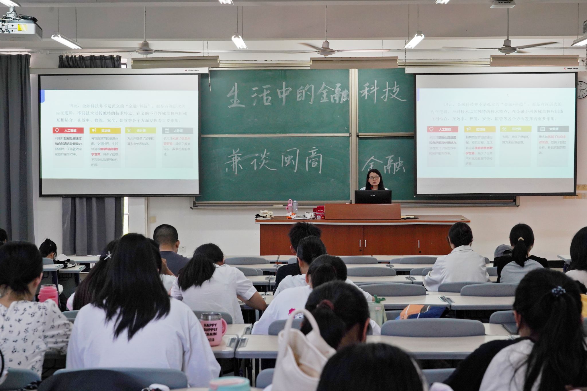 胡梅玲老师以“生活中的金融科技——兼谈闽商金融”为题,解读了金融科技的深层次涵义,以生动实例介绍金融科技在生活中的普及应用,深入浅出地讲解了当前科技在金融领域的最新动态和趋势,同时提醒同学们警惕和防范金融科技存在的各种风险。胡老师还从闽商金融人物、闽商金融创业发展史等方面带领大家了解闽商金融故事。
