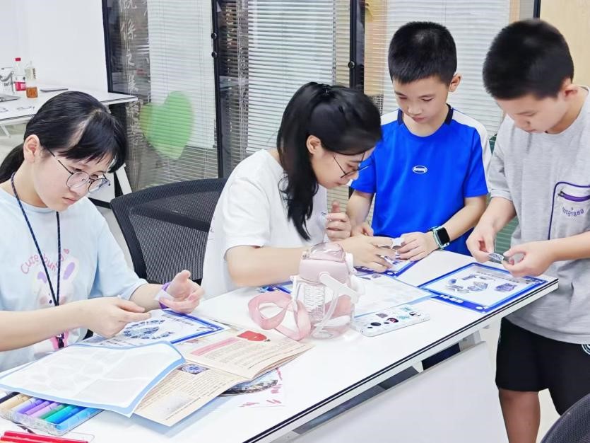 艺术设计学院学生与孩子们共同完成任务卡